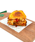 Slow Cooked Brisket, Raclette Cheese, Caramelized Onions, Pickles, Dijon Aioli in Sourdough Bread.
